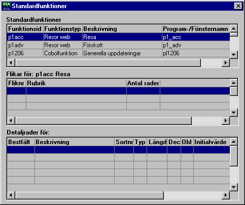 Du kan kopiera in Standardfunktioner från en databas som levereras från Visma. För att använda standardfunktioner så skall du sedan även koppla funktionen till ett fönster varifrån funktionen skall anropas. Mer information om detta får du i avsnittet Koppla standardfunktion till fönster.
