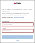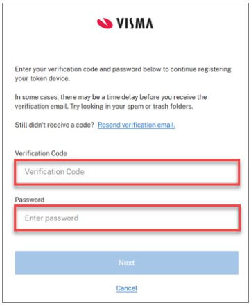 6. Fyll i den verifieringskod du fått i e-postmeddelandet samt det lösenord du fått tillsammans med användarnamnet av supporten.