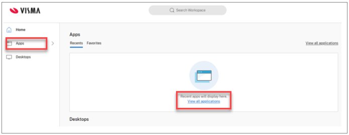 20. Nu ska du vara inne i Citrix. Klicka på Apps till vänster och sedan All apps eller View all applications mitt på sidan.