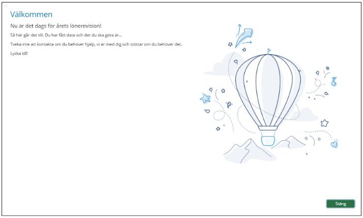 Du som chef möts av ett välkomstmeddelande som du kan stänga av när som helst. Inställningen är knuten till lönerevisionen, så vid nästa lönerevision så kommer du återigen få upp välkomstmeddelandet.