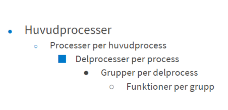 En huvudprocess representerar en samling av arbetsmoment (kallade delprocesser). En huvudprocess visas med sina olika delprocesser.